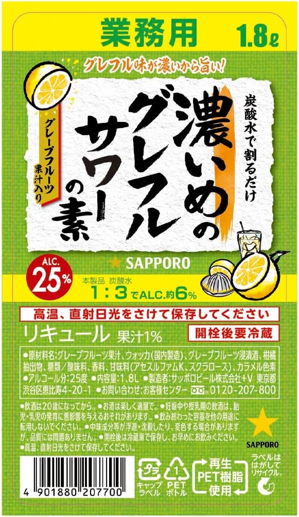 삿포로 진한 자몽 사워의 소 1800ml 20도 (원액) 무료배송 – 업소용 대용량 상큼쌉싸름 화이트 자몽 칵테일 베이스