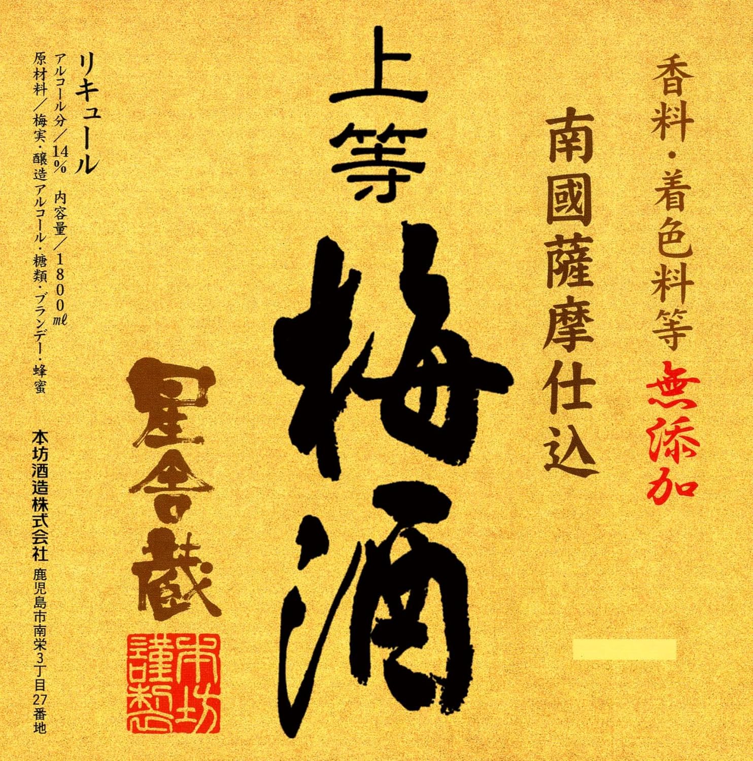 ‣ 제조 장소 가고시마 호시야구라, 제조사 본보 주조