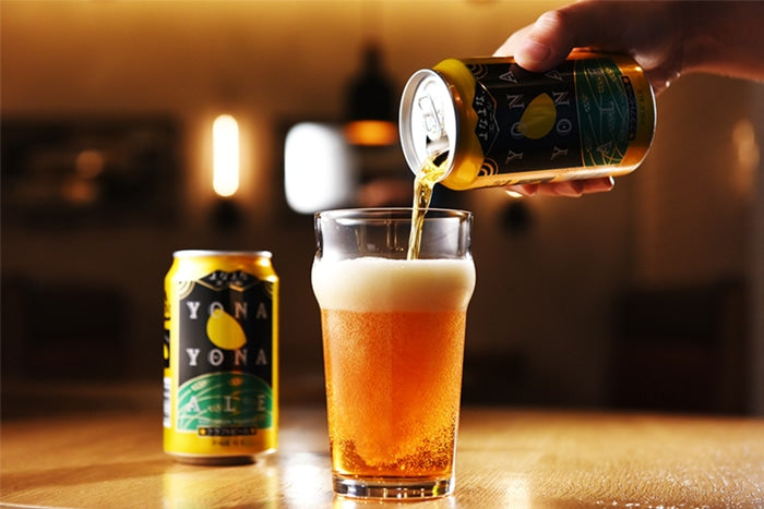 유리잔을 기울여 천천히 채우며 향기가 특징인 “요나요나 에일”의 거품을 만들어줍니다. “요나요나 에일”는 온도가 너무 낮으면 향기의 섬세한 부분이 줄어들고, 맛도 흐려져 버리기에 13도의 온도를 추천하고 있습니다. 너무 차지 않게 드시는 것을 추천합니다.